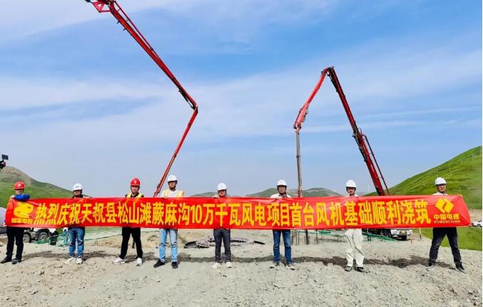 新疆臻元天祝县松山滩蕨麻沟10万千瓦风电项目首台风机基础浇筑圆满完成